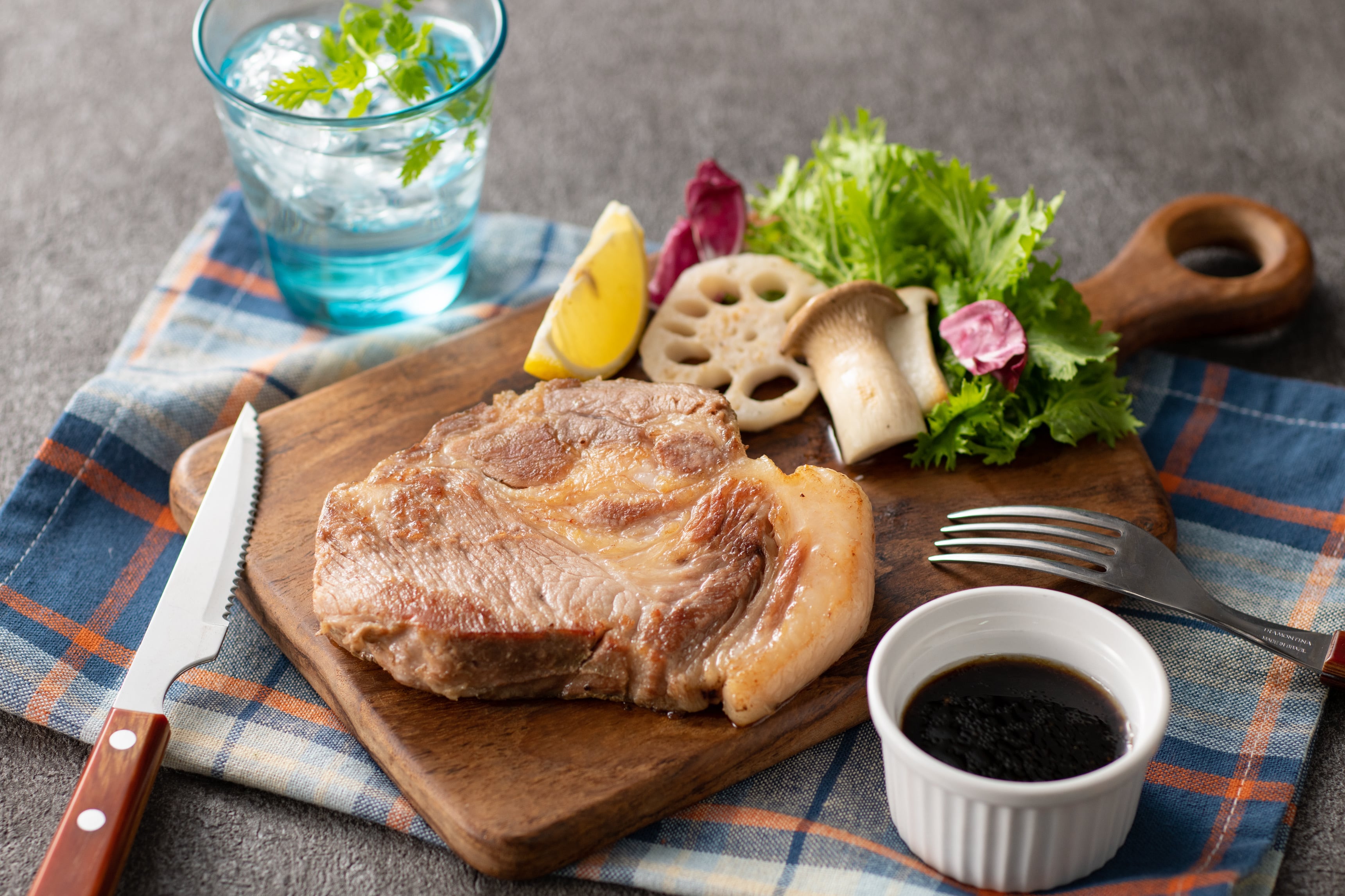 塊のままや厚めにカットして焼けば、ローストポークステーキとしてお召し上がりいただけます。